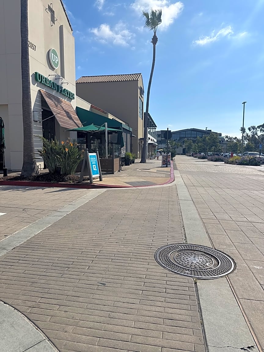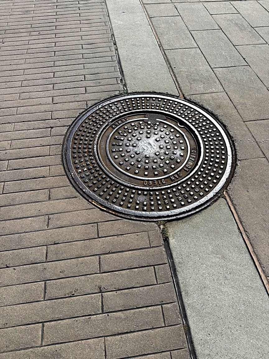 Walkway trip hazard - City of San Diego sewer - liability issue at Del Mar Highlands shopping center - sewer box sunken in