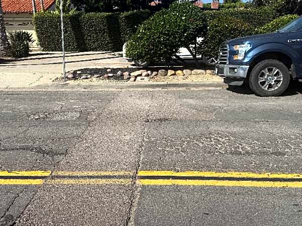 8448 La Jolla Shores Dr, La Jolla, CA 92037, USA, San Diego, CALarge pothole, 10" x 36", in middle of driving lane of Southbound side of La Jolla Shores Dr, at middle of 8448 lot.