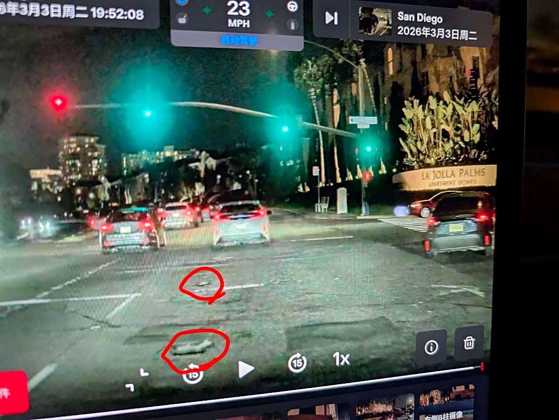 La Jolla Village Dr & Lebon DrPotholes on La Jolla Village Dr intersection with Lebon Dr || LOCATION: La Jolla Village Dr intersection with Lebon Dr || LANE: Rightmost lane || DIRECTION: Eastbound